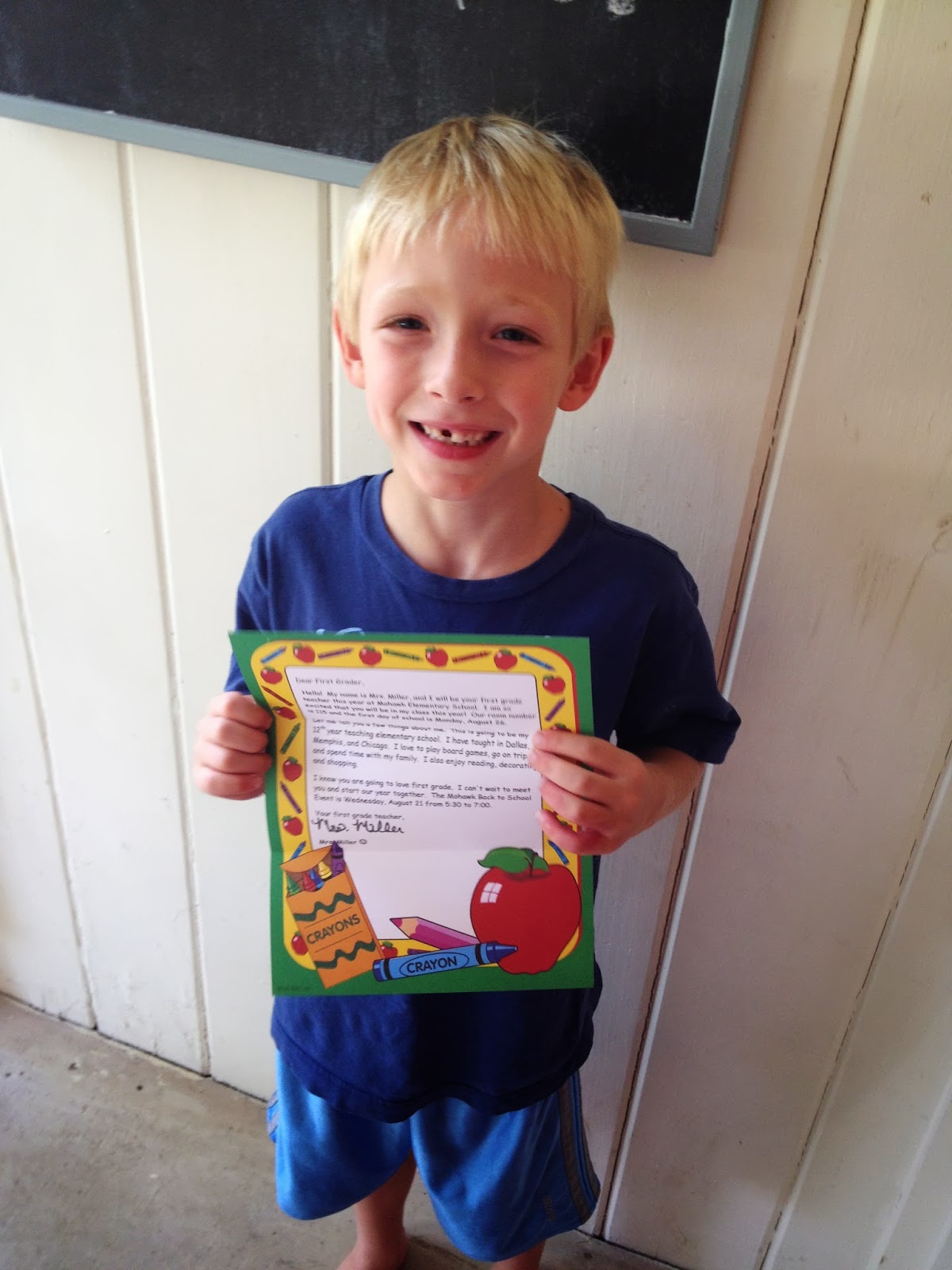 getting school letters around here is a BIG deal. i remember when i was a kid we use to drive up to the school and look at the list that they had posted of each class... not anymore... my kids press their faces to the window until the mailman arrives in anxious anticipation of who their teacher will be!